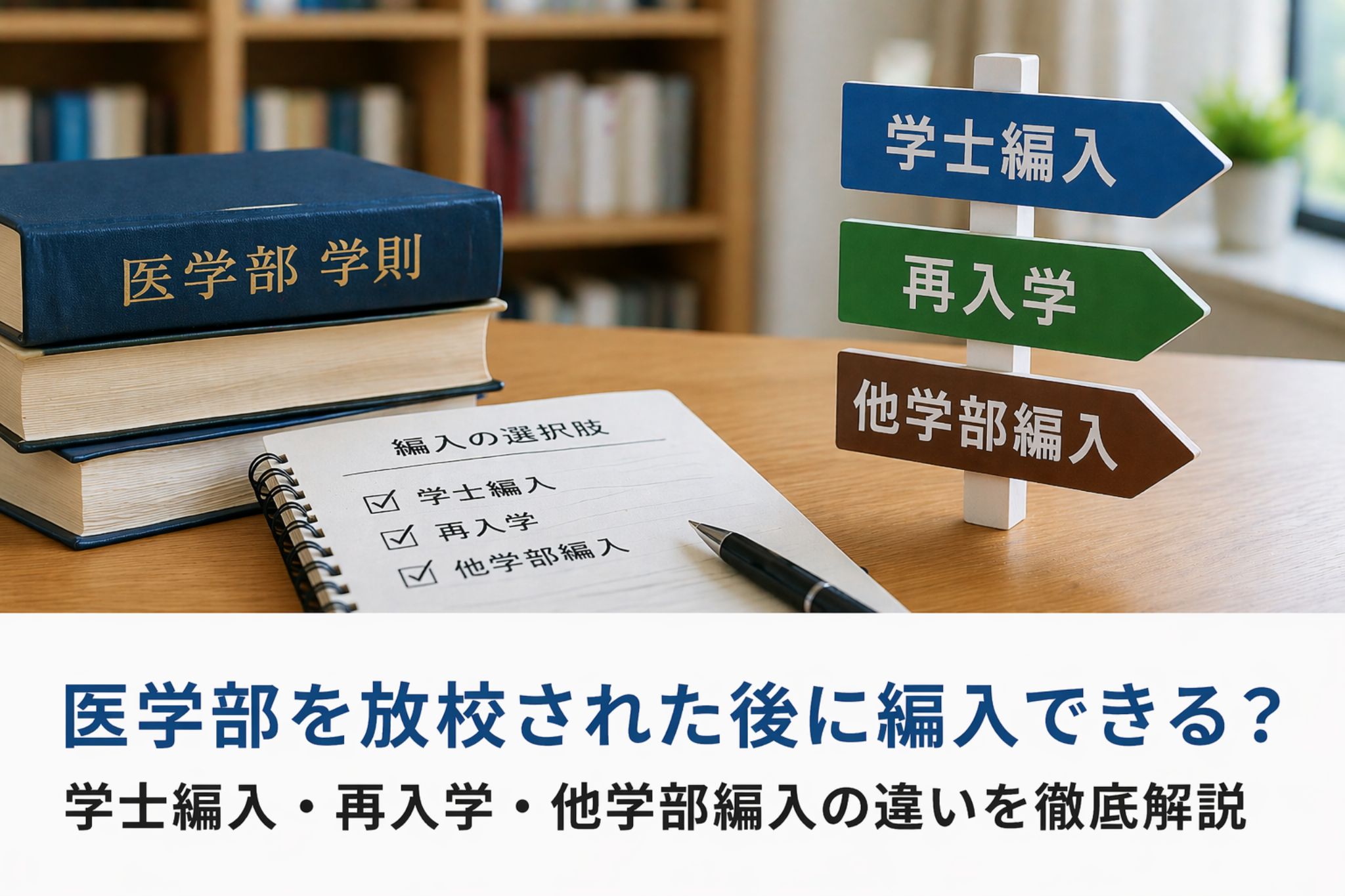 医学部を放校・退学・除籍になった後に編入できるのかを解説。医学部学士編入、元大学への再入学、他学部編入の違い、出願資格、注意点を整理します。