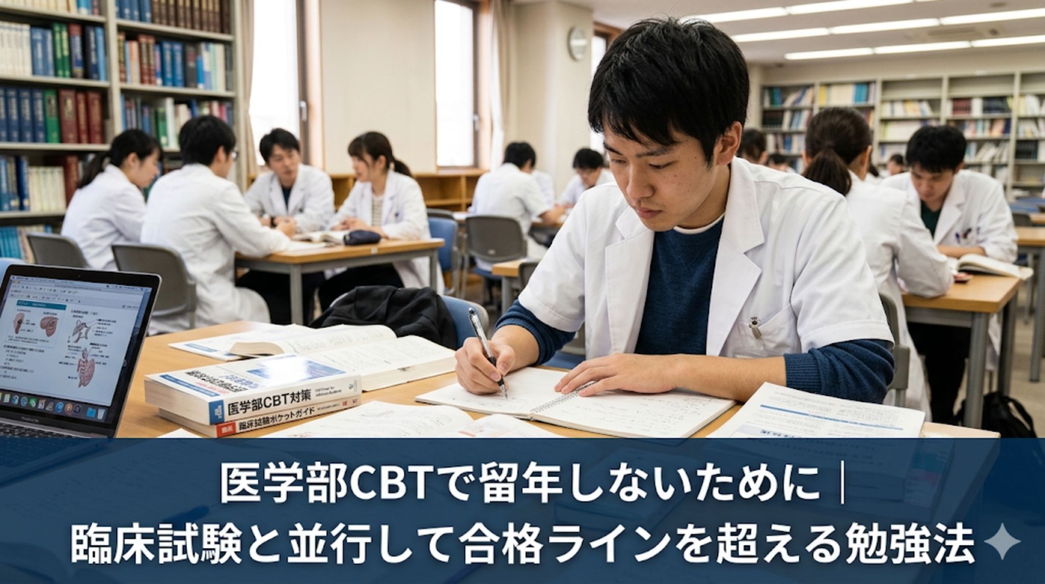 医学部CBTで留年しないための勉強法を解説。臨床医学の学科試験とCBT対策が一致しない理由、過去問依存の危険、CBT形式に変換する方法、直前期の対策を紹介します。