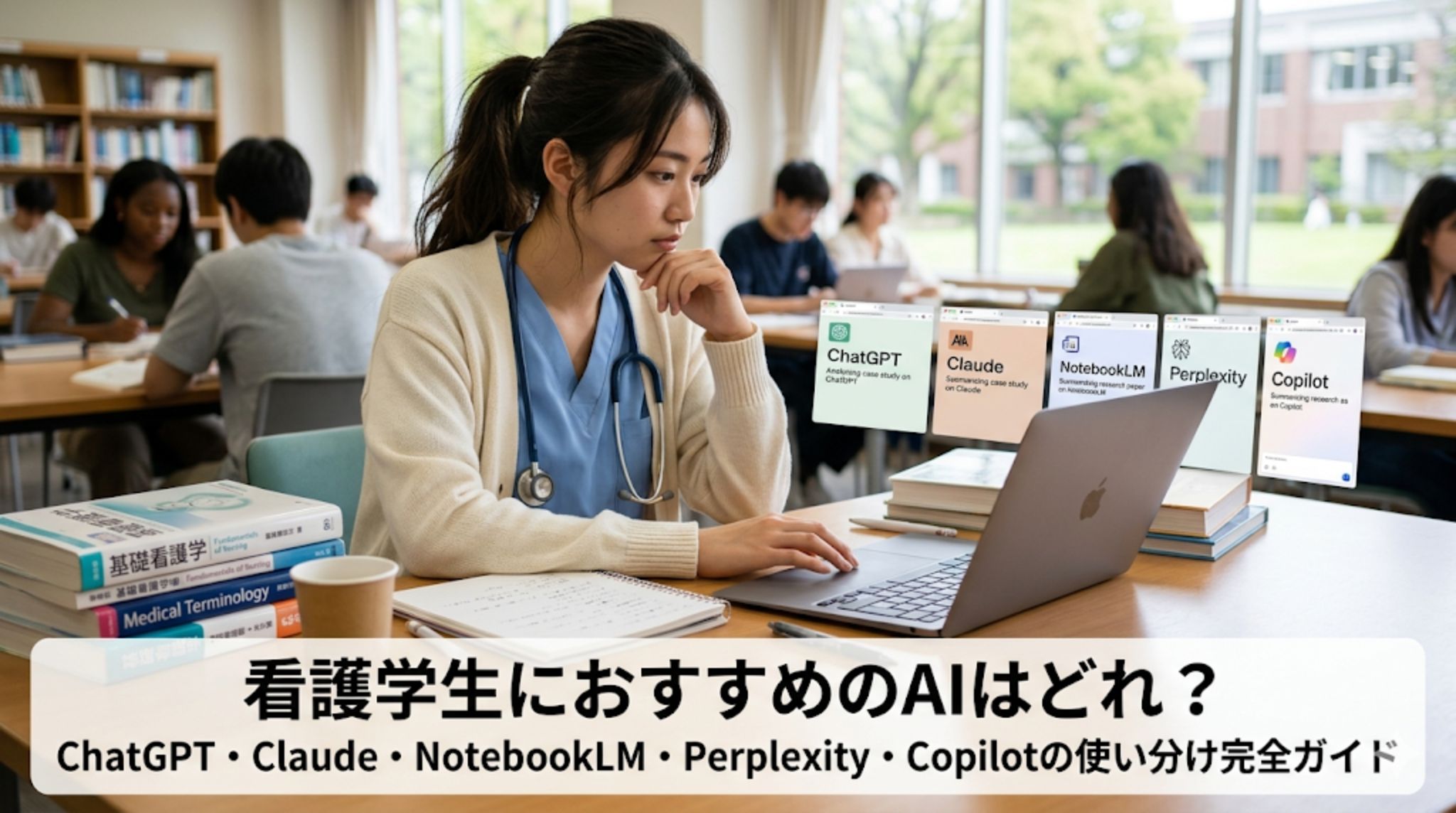 看護学生におすすめのAIはどれ?ChatGPT・Claude・NotebookLM・Perplexity・Copilotの使い分け完全ガイド