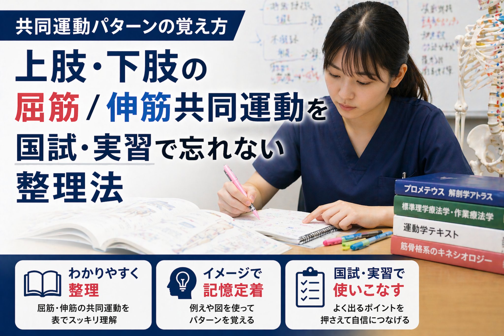 【5分で克服】共同運動パターンの覚え方|白紙再現できる暗記表と実習で使える観察のコツ